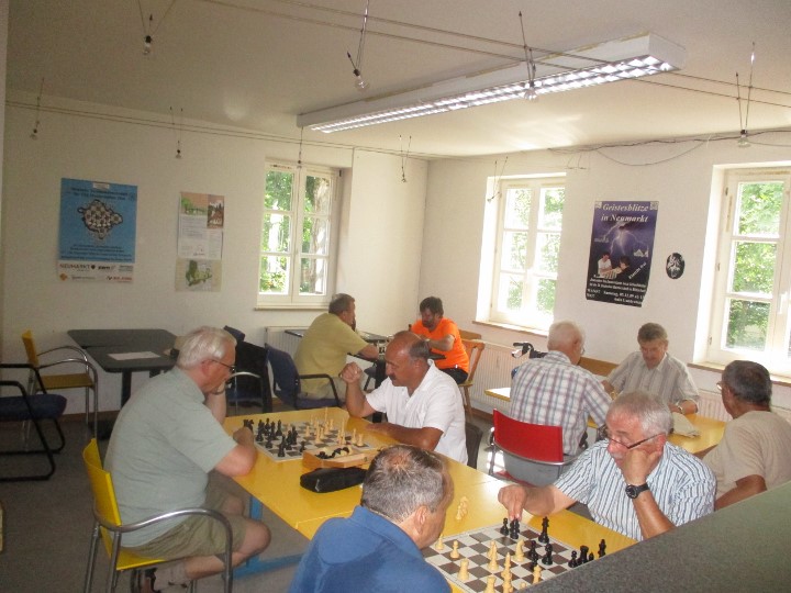 Zum dritten Mal führte der Schachklub Neumarkt einen Seniorenpokal durch, an dem acht Spieler im Modus jeder-gegen-jeden bei einer Bedenkzeit von 30 Minuten pro Partie teilnahmen. Favorit Rudi Appl startete mit einer Siegesserie, geriet dann aber gegen Peter Gruber in Bedrängnis. Dieser hatte am Ende zwar noch einen Bauern, aber da Rudi mit seinem König die Schlüsselfelder kontrollierte endete die Partie Remis. Im weiteren Turnierverlauf musste Rudi zwar noch eine Niederlage gegen Sepp Lehmeier hinnehmen, sicherte sich aber dennoch mit 5,5 Punkten den Turniersieg. Denn Verfolger Peter musste sich dem späteren Viertplatzierten Erich Schilay (4 Punkte) geschlagen geben, was Ronald Trinks nutzte um mit einem Sieg im direkten Duell in der letzten Runde an Peter (4,5) vorbeizuziehen und mit 5 Zählern Rang zwei zu erobern. Rang fünf ging an Josef Steinleitner (4) vor Sepp (2,5), Wolfgang Heider (1,5) sowie Dieter Eggerling (1).
