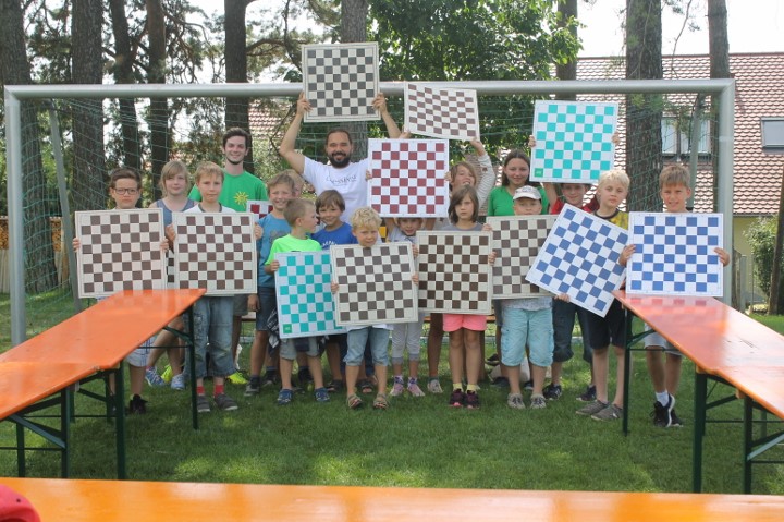 Auch in diesem Jahr gab es beim Sommercampus des Kreisjugendrings Neumarkt einen Schachtag. Vinzenz Schilay stellte den 15 Teilnehmern die einzelnen Figuren vor, deren Gangart u.a. beim allseits beliebten Gummibärchenspringerspiel geübt wurde ehe die ersten Partien gespielt wurden.