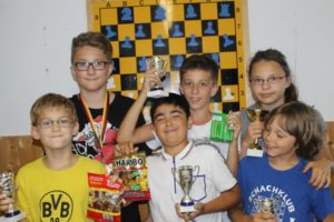 Unsere diesjährige Jugendvereinsmeisterschaft führten wir in den Altersklassen U12 und U20 durch. In der U12 konnten Andreas Hierl und Christoph Reger ihre Auftaktpartie gewinnen und im folgenden direkten Duell setzte sich Andreas durch. Titelverteidiger Vinzenz Schilay hatte zunächst das Freilos und büßte in Runde zwei gegen Leonhard Franke die Dame aufgrund einer Fesselung ein. Danach konnte Vinzenz Spitzenreiter Andreas schlagen, aber dieser holte gegen Leonhard Sieg Nummer drei und sicherte sich damit den Titel. In der letzten Runde kämpften Vinzenz und Christoph im direkten Duell um Rang zwei, das nach hartem Kampf remis endete. Dank der besseren SoBe wurde Vinzenz Zweiter vor Christoph, Leonhard und Karl Großer. In der U20 setzten sich Maria Schilay und Josef Franke jeweils gegen Daniel Henseler sowie Jakob Kraus durch. In der letzten Runde bezwang Daniel Jakob und sicherte sich somit Rang drei. Der Kampf um den Titel war eine spannende Angelegenheit bis ins Bauernendspiel, wo beide je eine Siegchance ausließen und die Partie letztlich mit einem Remis endete. Im folgenden Stichkampf mit 20 Minuten Bedenkzeit behielt Maria trotz Zeitnot mit einem hübschen Mattfinale die Oberhand.