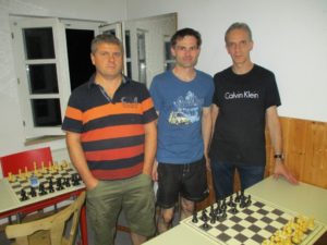 Team Neumarkt III – Thomas Hummel, Sebastian Mösl, Wolfgang Brunner und Franz Xaver Beer – hatten in der B3b zunächst spielfrei und trafen dann auf SG Fürth III. Wolfgang und FX konnten schnell gewinnen, so dass Thomas in minimal besserer Stellung remis gab. Sebastian kam zu einem durchschlagenden Königsangriff, fand dann den besten Zug nicht, hatte mit dem Gewinn der Dame für Turm und Figur aber eine gute Alternative. In der Folge stellte er dann aber eine Figur ein und stand dadurch auf verlorenem Posten. Der Computer entdeckte schon ein Matt in acht Zügen, aber der Gegner begnügte sich mit Dauerschach. In der nächsten Runde wartete der SC Heideck-Hilpoltstein II, wobei FX die einzige Niederlage des Abends quittieren musste. Wolfgang kam nicht über ein Remis hinaus, weshalb Sebastian in ausgeglichener Stellung ein Remisgebot ablehnte. Kurz darauf konnte sich Thomas doch durchsetzen und auch Sebastian stand nun leicht besser. In Zeitnot hatte er dann aber wohl nicht richtig hingesehen und wähnte den gegnerischen König auf einem anderen Feld. So wurde er von einer Variante überrascht die eigentlich gar nicht gehen sollte, war aus dem Konzept und übersah sogar dass er im Schach stand. Letztlich hatte er Glück, dass sein Gegenüber den falschen Bauern deckte, so dass ihm Randbauer mit falschem Läufer übrigblieb. Danach gab es einen knappen 2,5:1,5 Erfolg über SF Fürth II. Den entscheidenden Sieg holte FX, an den anderen Brettern wurde der Punkt geteilt. Damit war klar, dass man mit einem Sieg zum Abschluss gegen Zabo-Eintracht Nürnberg II die Meisterschaft einfahren würde. Sebastian gewann schon in der Eröffnung eine Figur und auch Wolfgang holte den ganzen Punkt. FX drückte lange mit aktiven Figuren bis ein Blackout seines Kontrahenten die Partie beendete. Thomas erzielte noch ein Remis zum 3,5:0,5 Endstand – damit war der Aufstieg in die B2 perfekt.