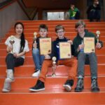Ein im Vergleich zum Vorjahr um mehr als die Hälfte geschrumpftes Feld gab es in der U16. Dank einer Spielordnungsänderung kann man bei zehn Teilnehmern mittlerweile ein Rundenturnier mit 15 anstatt 20 Minuten Bedenkzeit spielen und ist nicht unsinnigerweise auf sieben Runden Schweizer System festgelegt. Mit Benedikt Heller (SC Bechhofen) gab es einen klaren Favoriten und er wurde dieser Rolle mit perfekten 9/9 auch gerecht. Spannend war dagegen der Kampf um die Ränge zwei und drei, bei dem auch der Neumarkter Nachwuchs in Person von Ivan Krushevsky, Leonhard Franke und Vinzenz Schilay mitmischte. Ivan musste sich zwar Leonhard geschlagen geben, gewann aber dafür gegen den Setzlistenzweiten Kaan Özkurt (SK Freising). Leonhard kassierte nach einem 3/3 Start Niederlagen gegen Benedikt sowie Maxim Cesarski (SC Ansbach) und Ivan fiel mit zwei Niederlagen in den Runden fünf und sechs zurück. Dagegen hatte Vinzenz nach sechs Runden mit 5 Punkten überraschend zwei Zähler Vorsprung auf Platz vier. In den Runden sieben und acht unterlag Vinzenz Ivan und Benedikt, wodurch Kaan, Leonhard und Maxim mit Vinzenz gleichzogen. Im spannenden Finale gewann Vinzenz gegen Maxim, während Kaan gegen Felix Neubert (SV Lauf) remisierte. Damit hätte Leonhard mit einem Sieg Rang zwei erobern können, aber er musste sich Julian Cwiklik (SC Postbauer-Heng) geschlagen geben. Dies bescherte Vinzenz Rang zwei vor Kaan, Ivan, Leonhard und Maxim. Henry Pham belegte mit 2 Punkten Platz neun.
