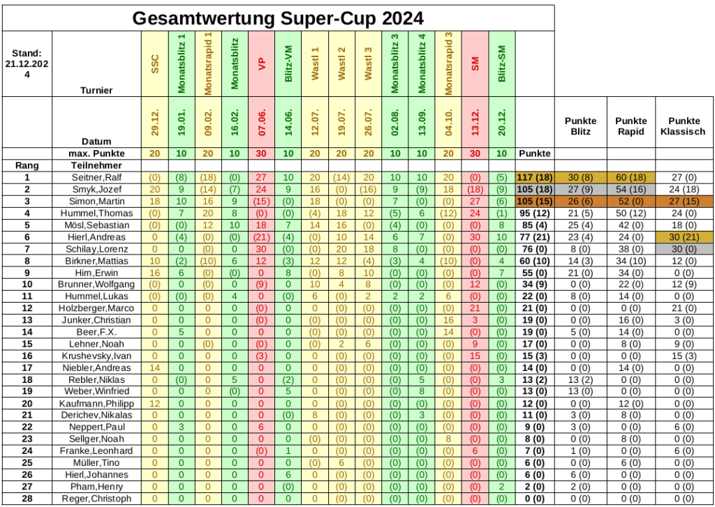 Am Endstand des Super-Cups 2024 hat das BSM-Ergebnis als letztes Turnier des Jahres nichts geändert.