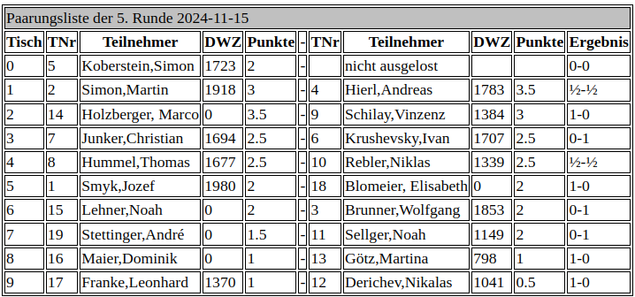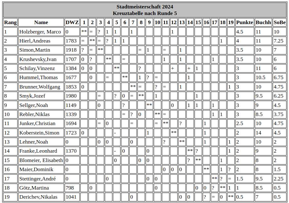 Stadtmeisterschaft 2024 Runde 5 und Auslosung Runde 6