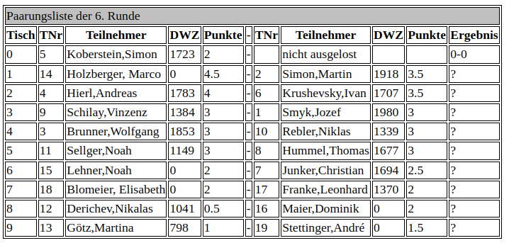 Stadtmeisterschaft 2024 Runde 6 und Auslosung Runde 7