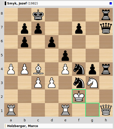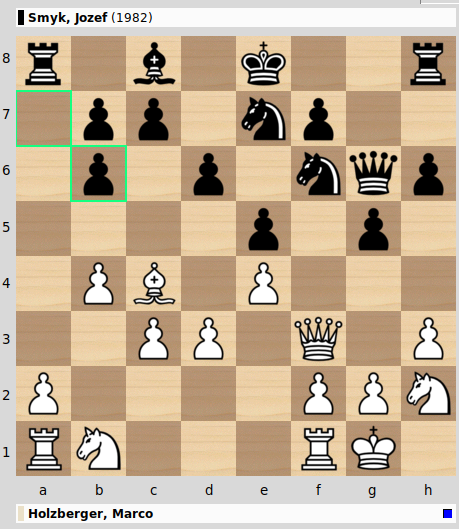 Im Kampf der letztjährigen Mitfavoriten Marco Holzberger und Jozef Smyk lief es nicht gut für Marco, der anfangs seine Entwicklung vernachlässigt und Jozef zu einem bedrohlichen Aufmarsch verleitet hatte. In dieser Stellung unterlief Marco dann ein fataler Fehler: