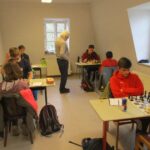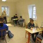Als „Belohnung“ durfte wir am nächsten Morgen gegen Tarrasch antreten, die noch eine blütenweiße Weste hatten. Auch wir vermochten erwartungsgemäß daran nichts zu ändern, machten es den starken Gegnern mitunter auch zu leicht. Leonhard attackierte mutig das Bauernzentrum, was einen Bauern kostete. Zwar hatte er dafür noch latente Drohungen, aber sein Gegenüber ließ sich auf nichts ein und als Leonhards Springer nicht mehr aus dem Eck kam, war die Messe gelesen. Christoph hatte die beste Fortsetzung in der Eröffnung verpasst und geriet früh unter Druck. Beim Versuch den Bauernverlust zu vermeiden funktionierte die Schlagvariante nicht und er musste die weiße Fahne hissen. Max Blank schwächte früh seine weißen Felder, woraufhin bald ein Bauer verloren ging und später noch weiteres Material hinzukam. Zuletzt übersah Ivan einen taktischen Schlag im Zentrum, wonach ihm sein Kontrahent keine Chance ließ in die Partie zurückzukommen.