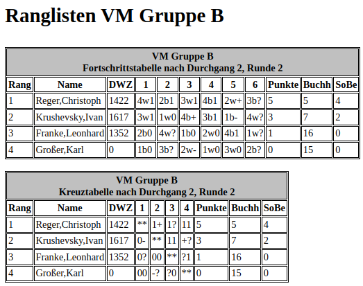 Im Gegensatz dazu ist Christoph Reger in Gruppe B nach einem kampflosen Punkt bereits durch: mit 2 Punkten Vorsprung und noch einer verbleibenden Runde, kann ihm nicht mehr passieren.