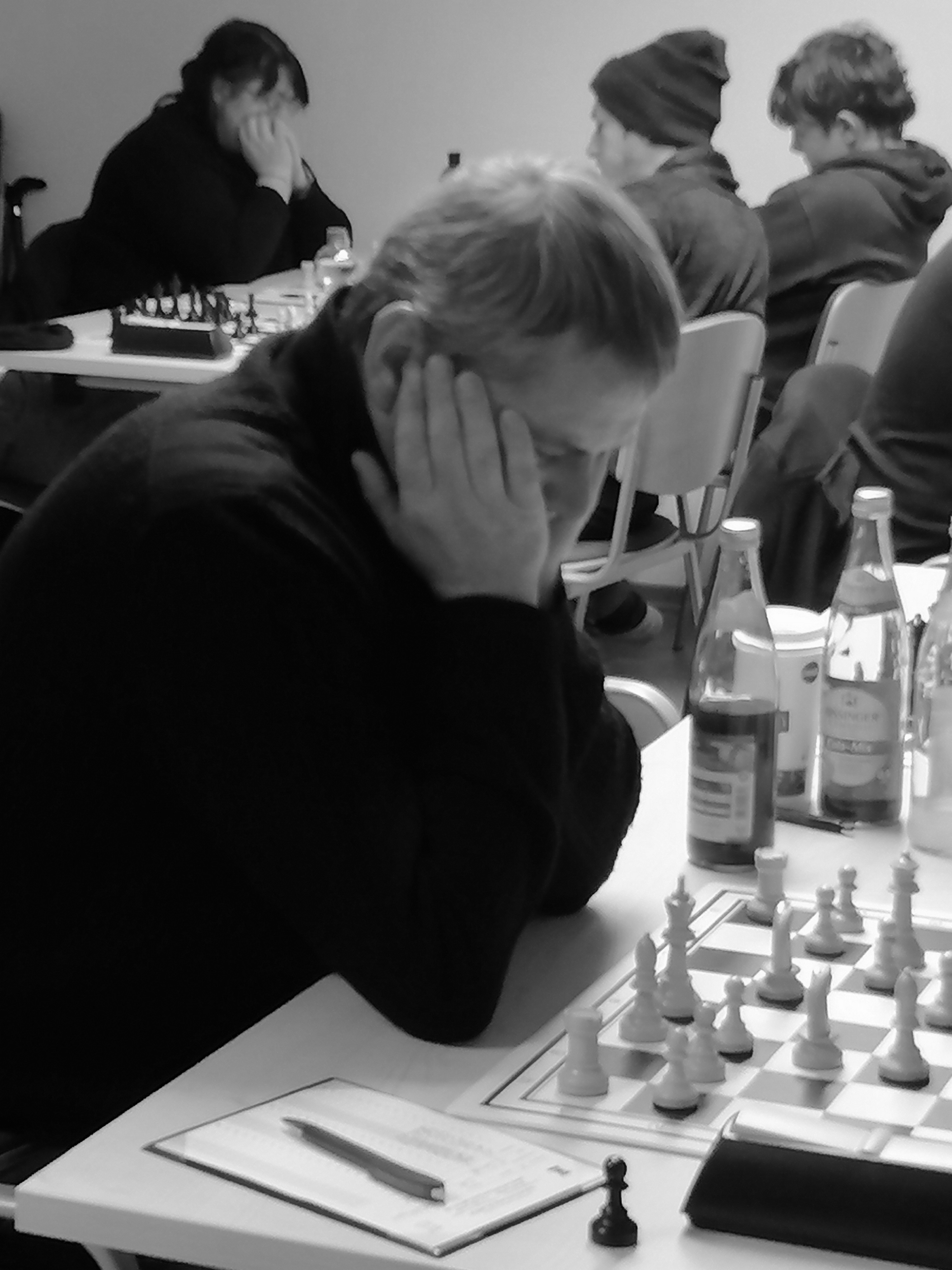 Dafür, dass Martin Simon unbedingt gewinnen musste, um noch Erster zu werden, entwickelte sich gegen Wolfgang Brunner eine erstaunlich ruhige Partie, die an keiner Stelle aus dem Ungleichgewicht kam. Man kennt sich eben nach Jahrzehnten im gleichen Schachklub und derselben Mannschaft, so dass das Remis am Ende nicht überraschend kam.